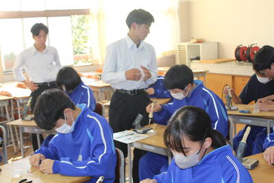 2024年11月12日 17時17分11月12日(火)の午後は、2学年の生徒達が平工業高校の体験実習に参加してきました。今回の体験学習は、キャリア教育の一環で、高校生との交流を通して生徒たちは専門教育の理解を深めることができました。電気工学科では、延長コードの製作、制御工学科では、水位センサー(電気クラゲ)の製作、情報工学科では、オルゴールの製作を行いました。生徒達は、体験実習で楽しく活動できたことによりとても充実感を味わうことができた様子でした。今回の平工業高校体験実習は、いわき教育事務所が主催として実施しています。平工業高校の校長先生をはじめ、教職員の皆様、そして高校生の皆さん、さまざまなことを詳しく教えて下さり、ありがとうございました。