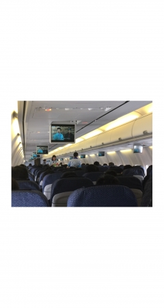 現在はUSJへ向かうバスの中です。飛行機の中での様子です。何度か揺れましたが、その他は快適に過ごしました。