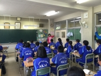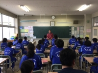校長からは、「上から物が落ちてこない」「横から物が倒れてこない」「物が移動してこない」場所を見つけて安全を確保すること、教頭先生からは計時報告と今日の状況、「知識と判断力」について、安全担当の先生からは避難時の対応についての話がありました。今日のような真剣に取り組む態度があれば、万が一の場合に正しい判断、正しい行動が取れると思います。