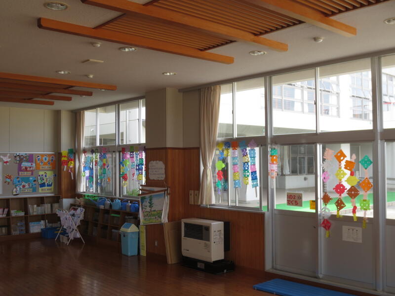 2022年4月27日 13時20分1年生教室の前にある生活科ルームに、色とりどりのものがぶらさがっていました。