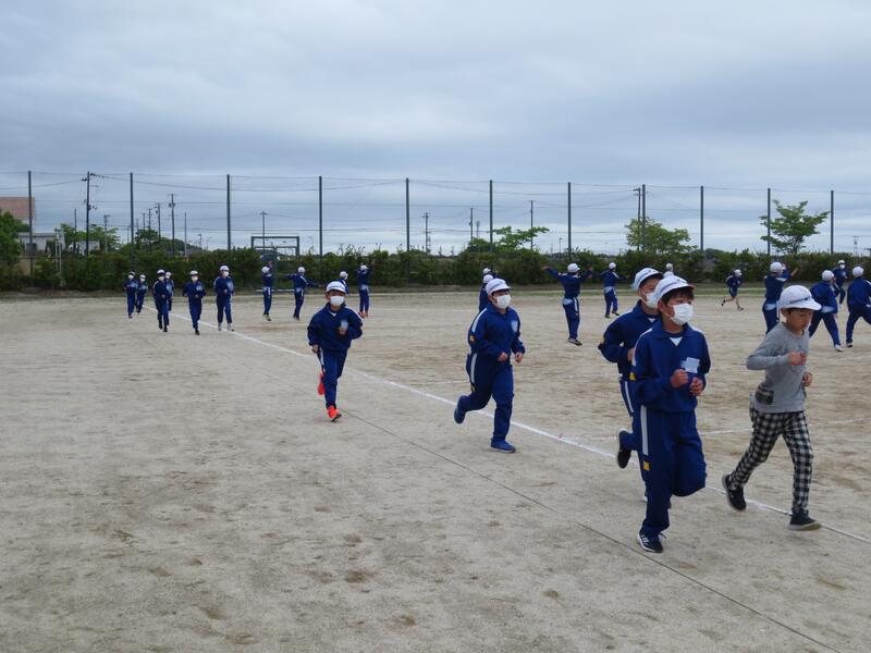 運動身体作りプログラム、ランニングを主とした体づくりから、無理のない範囲、授業時数の範囲内で練習に励んでいます。