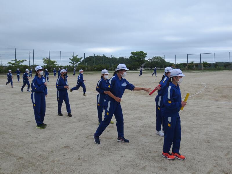 学校代表の選手たちも、リレーの練習に励んでいます。