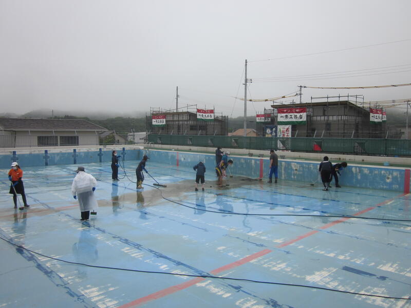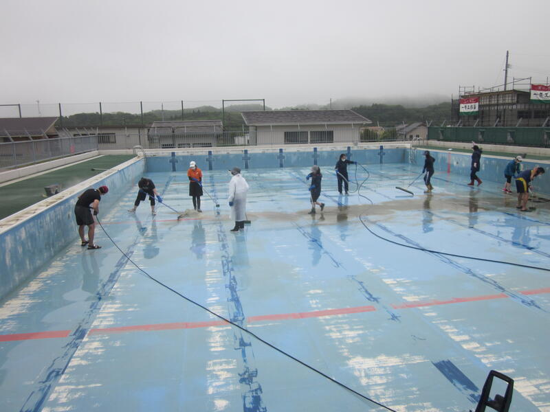 今年度は水泳学習を実施する予定ですので、プール清掃は実施の必要があることから、教職員のみで行いました。