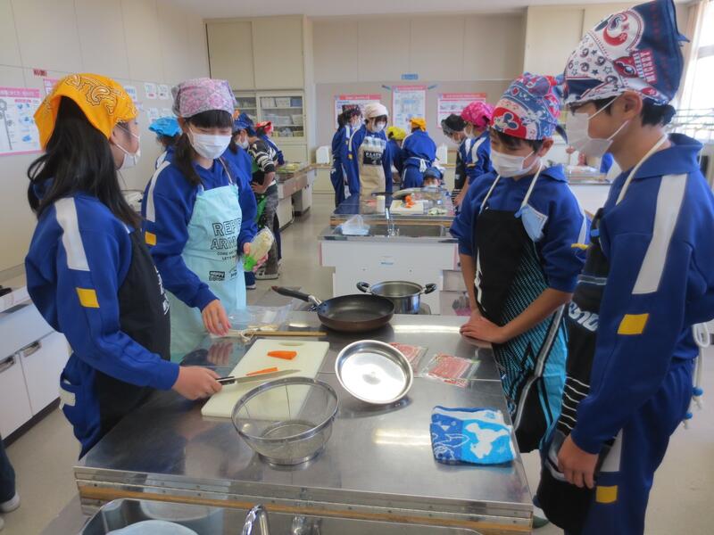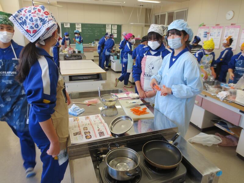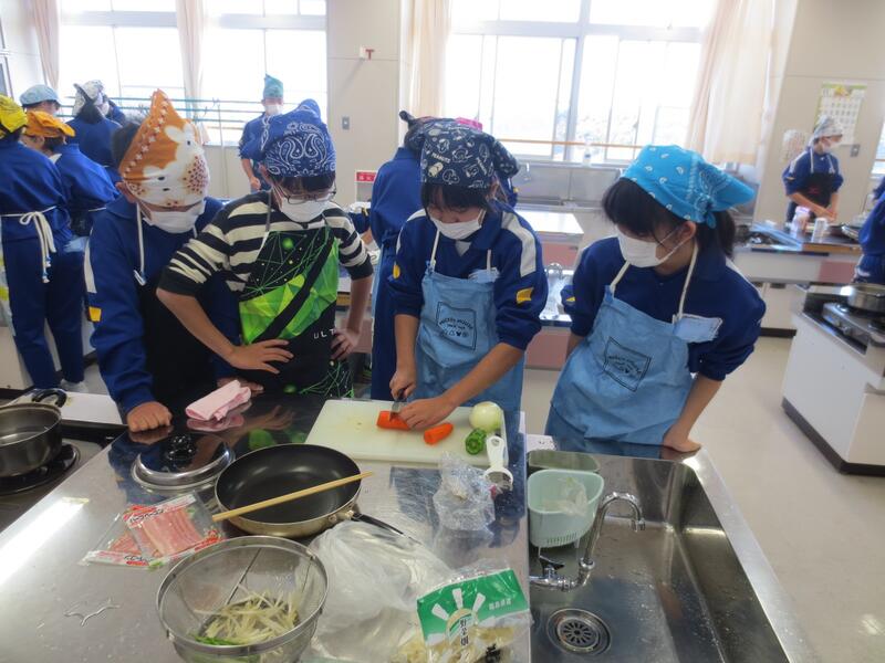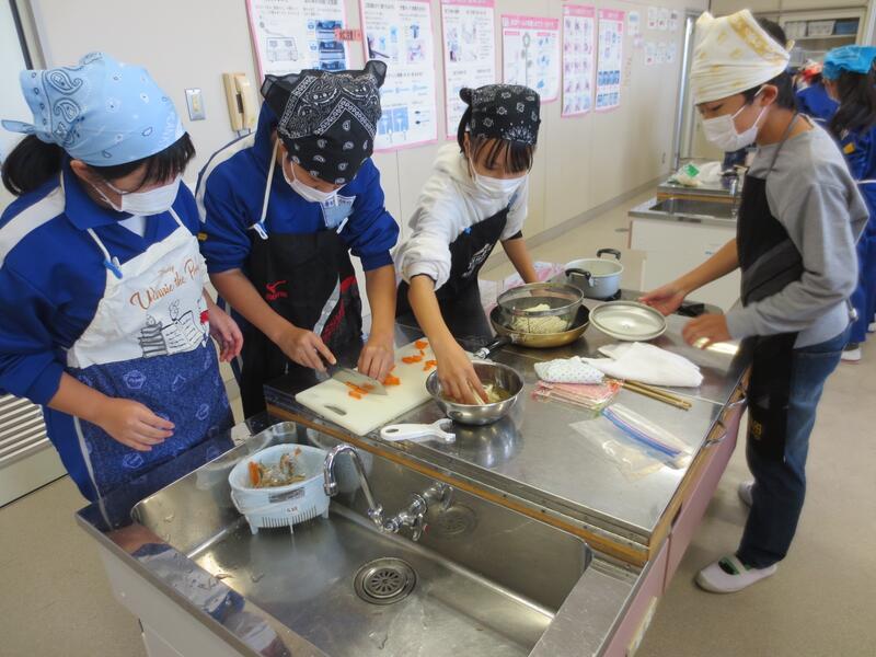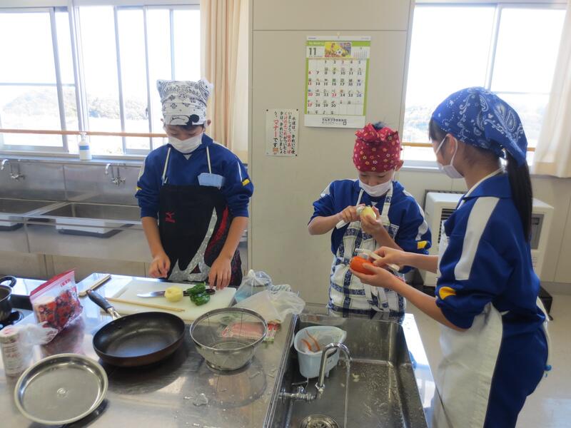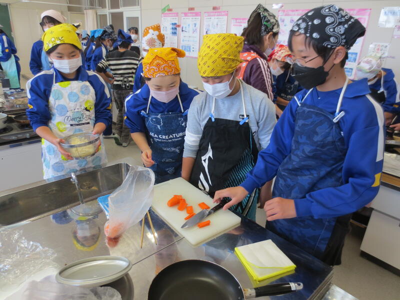 2022年11月18日 17時36分6年生が調理実習を行うことを聞き、家庭科室へ向かうと、何やらおいしそうな匂いがしてきました。