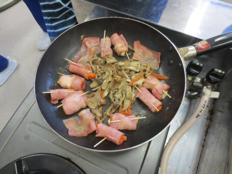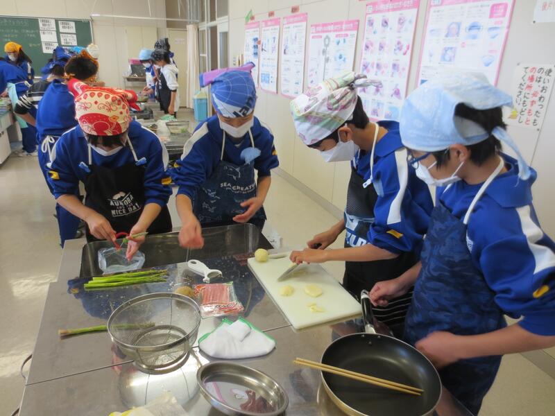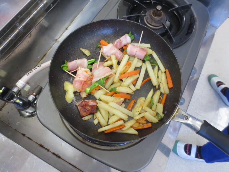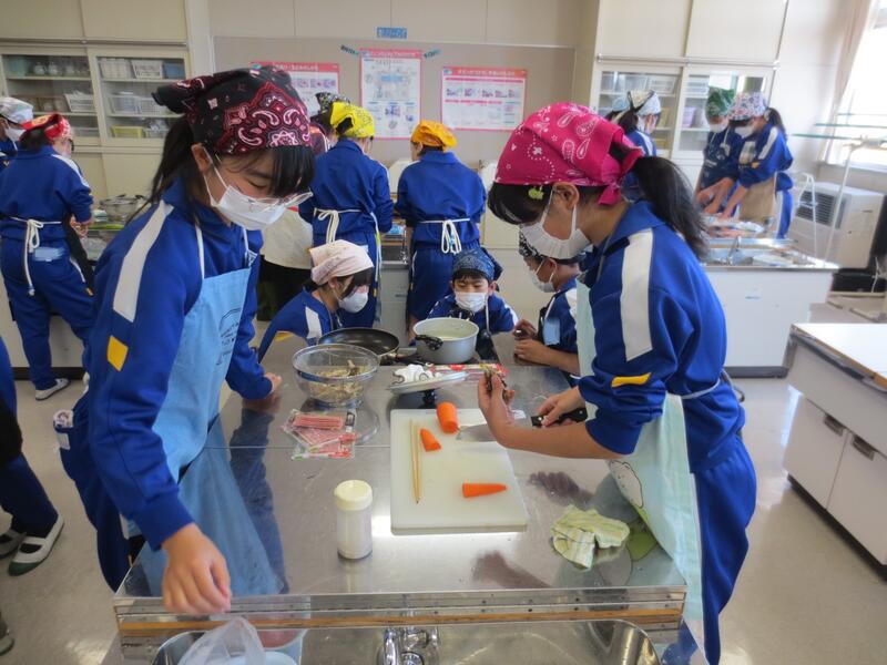 6年生が調理実習を行うことを聞き、家庭科室へ向かうと、何やらおいしそうな匂いがしてきました。