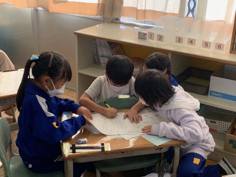 大休憩の時間なのに、やらなくてよいのに、楽しくプリントに取り組む姿を見て、「学ぶことは楽しいこと」を実践している1年生はすごい!! とひたすら感動してしまった大休憩のひとこまでした。