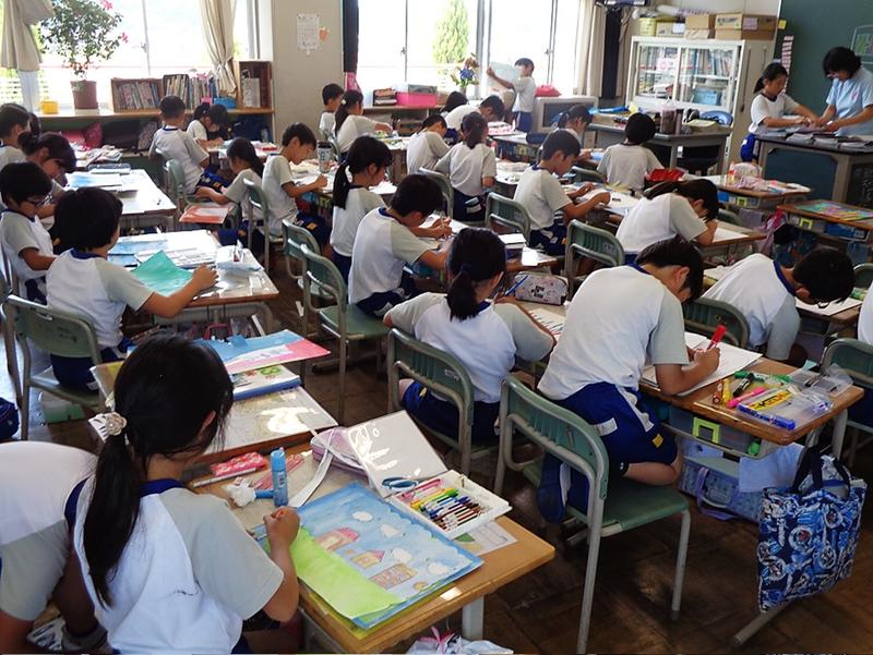 3年生は図工で静かな音楽を聴きながら「まほうのとびら」制作や社会科でいわき市についてグループで話合いを行っていました。楽しそうです。