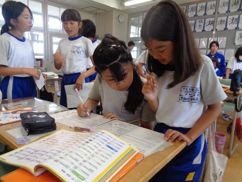 5年生は、家庭科でボタン付けや、保健体育で心と体の学習、算数で問題の解き方の考えを出し合っていました。高学年になると集中力がすごいです。聞いたことをすぐ実践します。すばらしい!