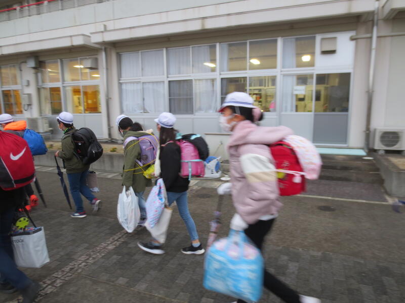 小雨がちらつくあいにくのお天気ですが、みんながんばって登校してきました。