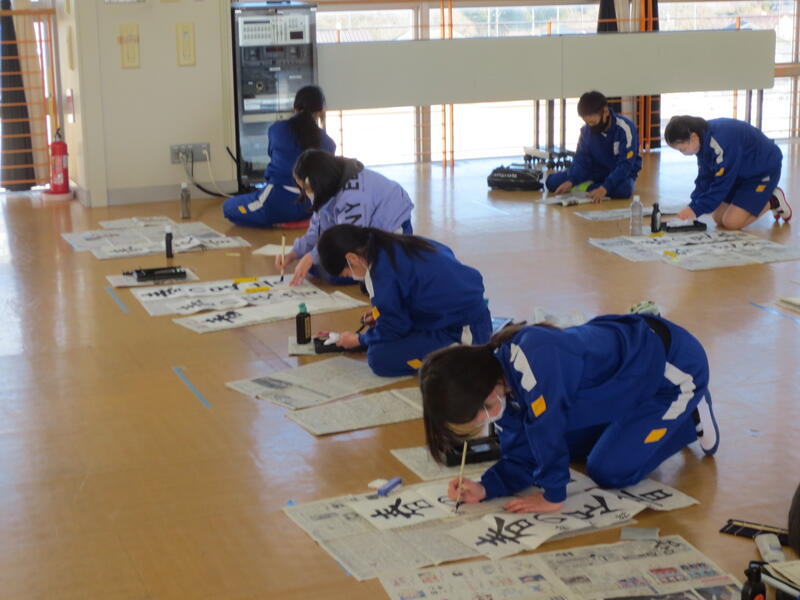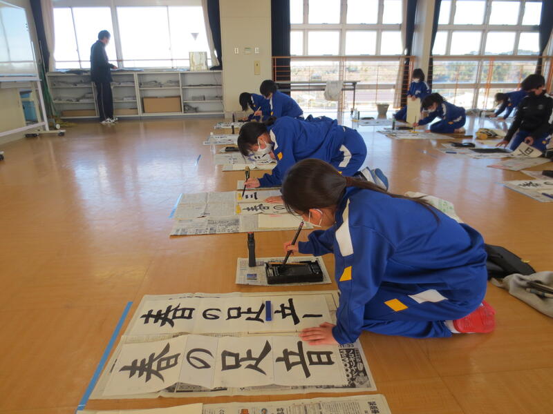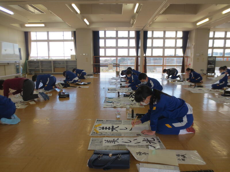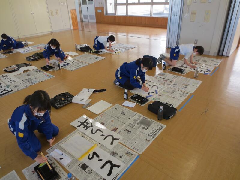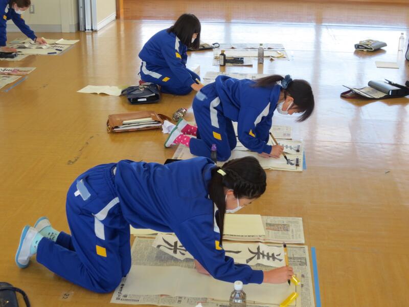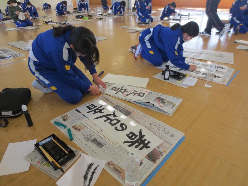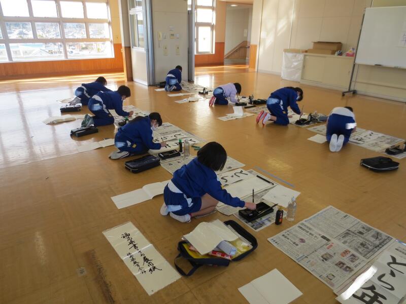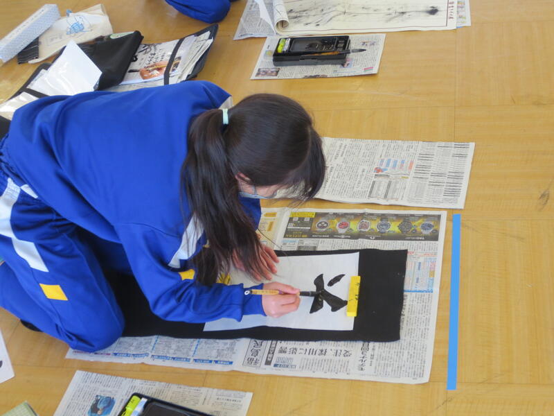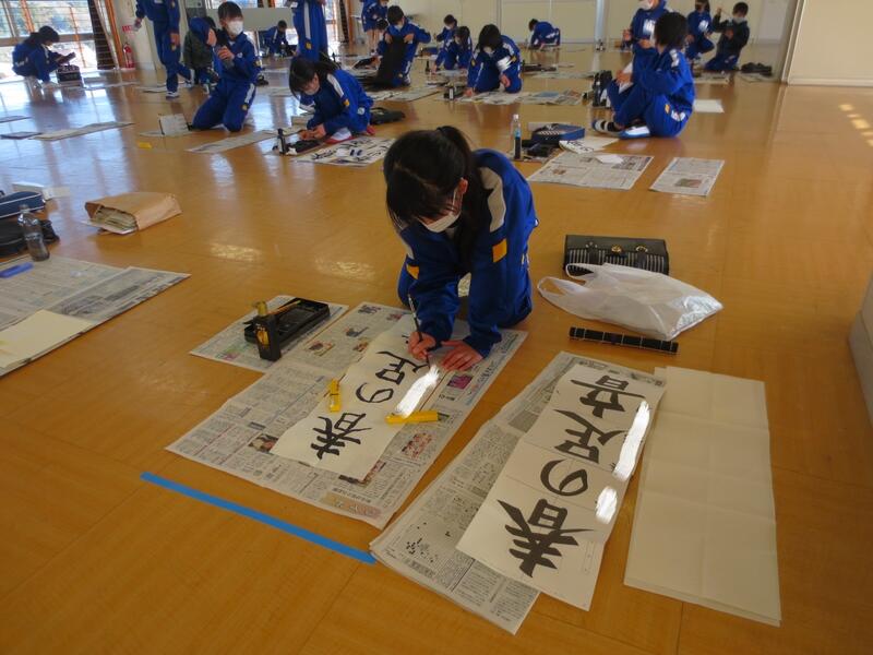 本日の校内書き初め会は3校時に4年2組が、5校時に3年2組が行いました。