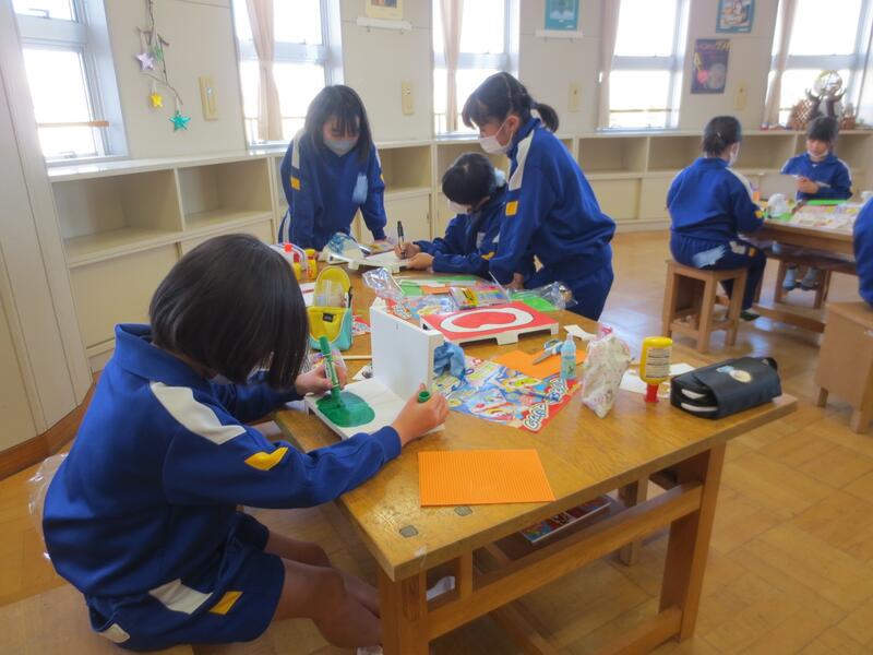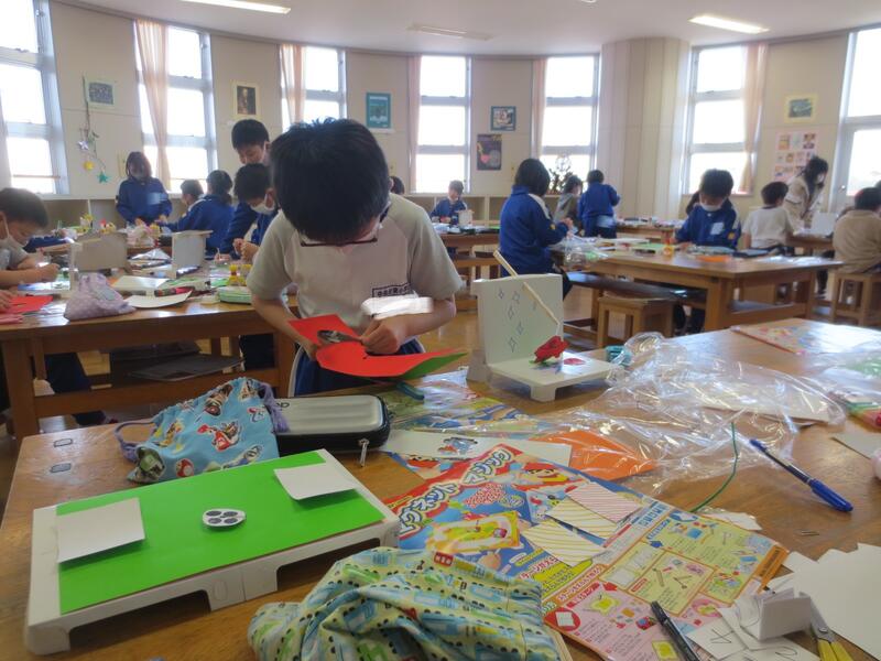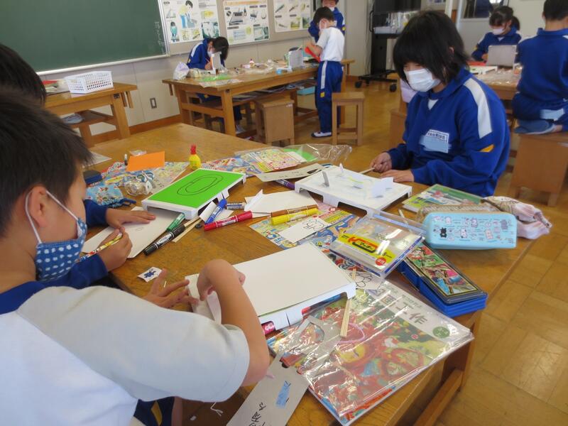 図工の活動です。マグネットを使って動くしくみの工作です。