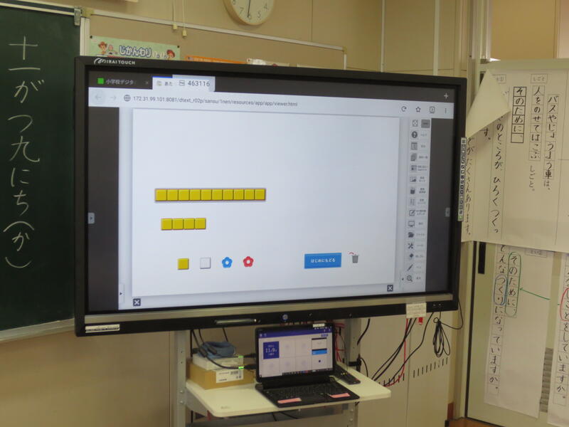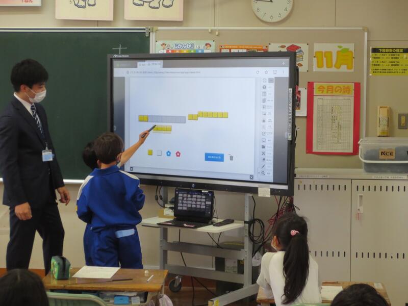 1年生の算数でしたが、タブレットを上手に活用し、みんなで考えを共有して、繰り下がりのあるひき算について学ぶことができました。