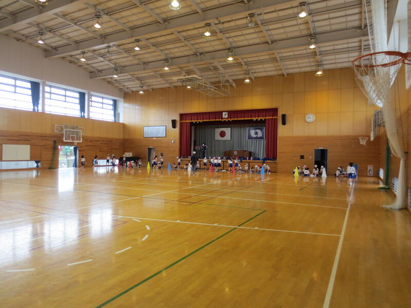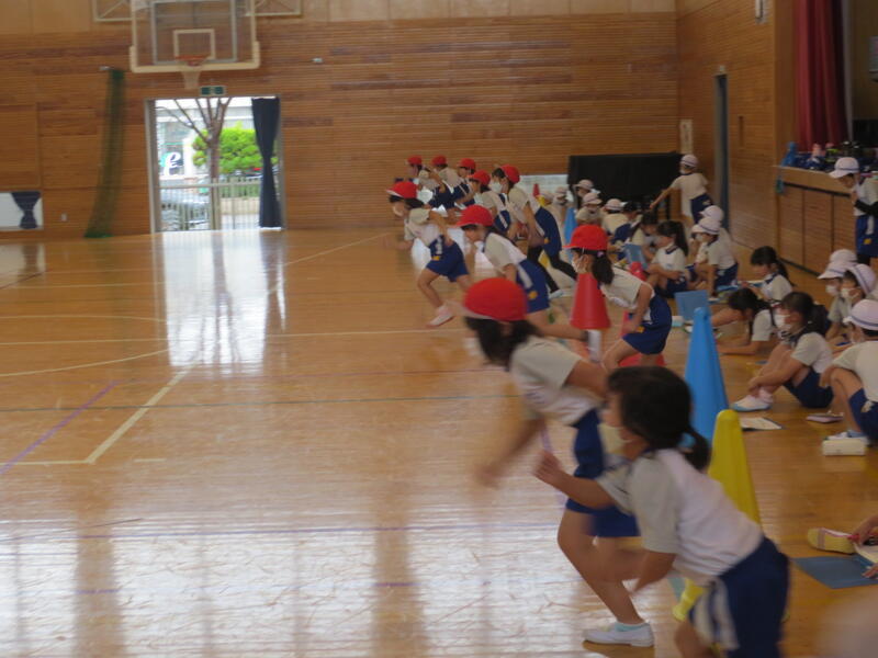 体育館では、2年生が持久走の練習でしょうか、折り返し走をしていました。