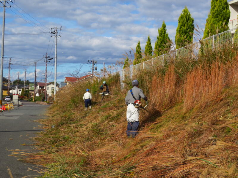 本日は、シルバー人材センターの方3名にご来校いただき、校地壁面の除草作業を実施しています。