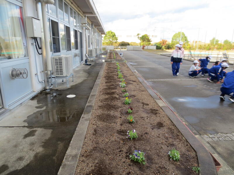 今年度、緑化担当の先生が中心となって声をかけ、6年生の協力のもと、いつも花壇をきれいにしてくれています。本日も、春に向けて準備を進めてくださいました。