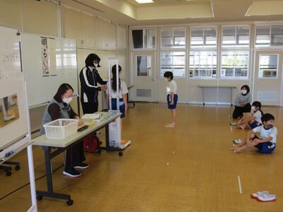 明日は4~6年生の発育測定がありますので、該当する児童のみなさんは、中に運動着の半袖半ズボンを着用してくるようにしましょう。