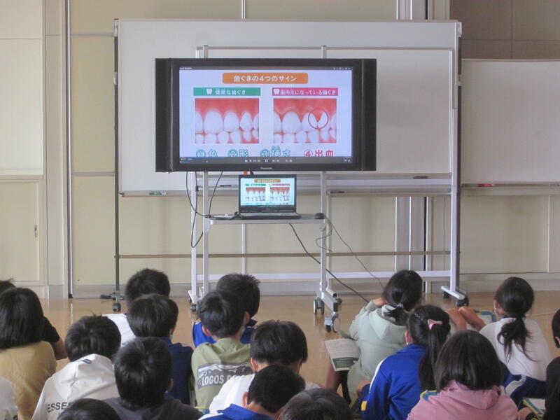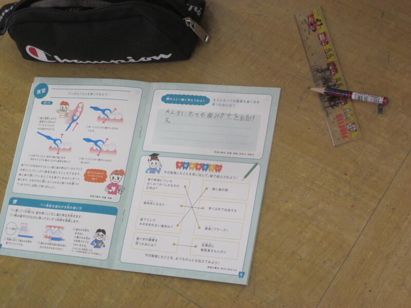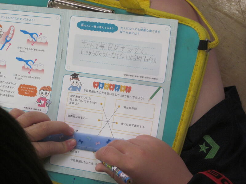日程の都合で本日になりましたが、5年生は、全国小学生歯みがき大会のDVDや冊子を活用して、歯みがきについて学びました。