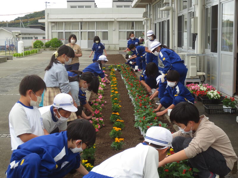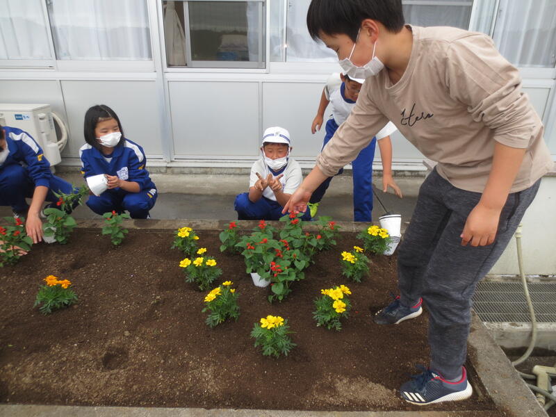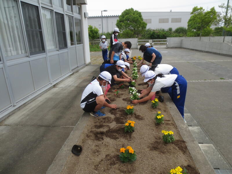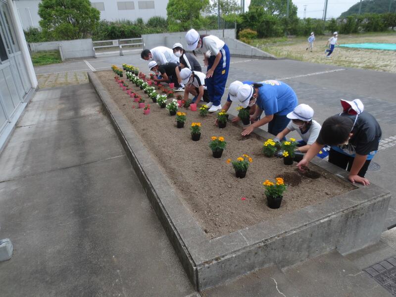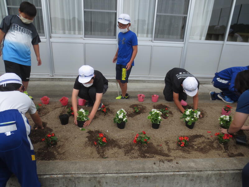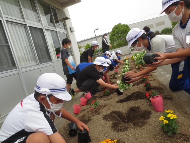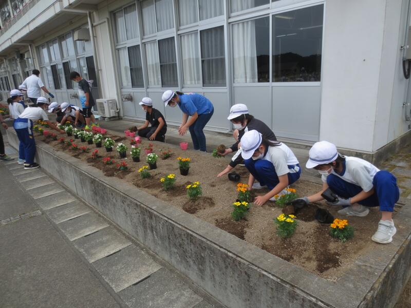先日、園芸委員会の皆さんが、職員室前の花壇へ花の植え替えをしてくれました。