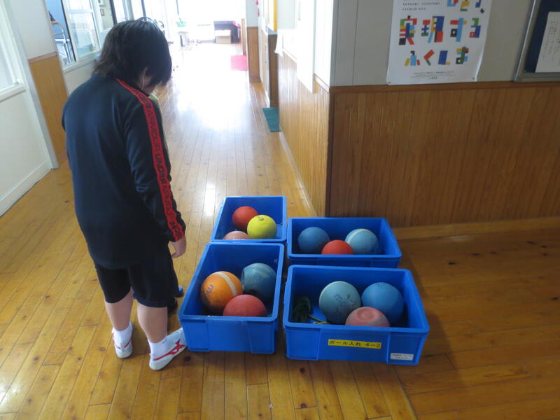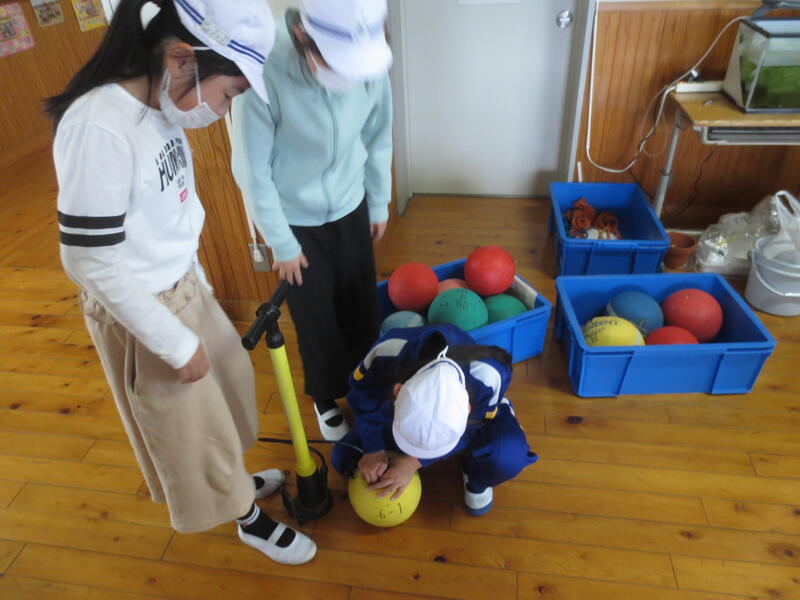 ボールの空気入れ、みんなが使うドッジボールは空気が抜けていると困りますからね。