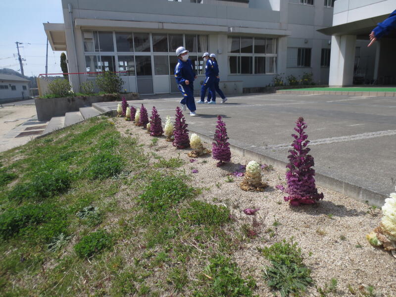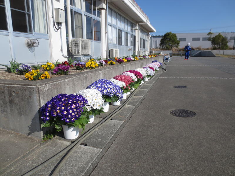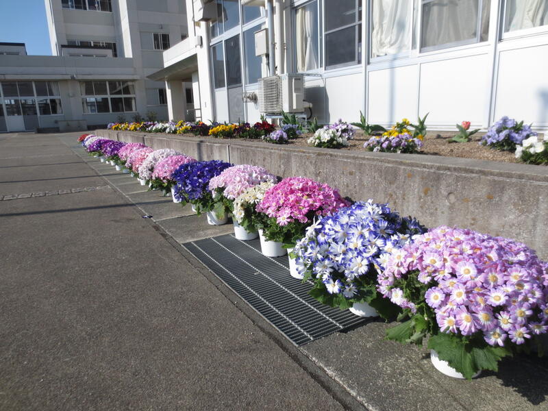 昨日、6年生が、入学式で飾ったサイネリアを職員室前の花壇に運んでくれました。