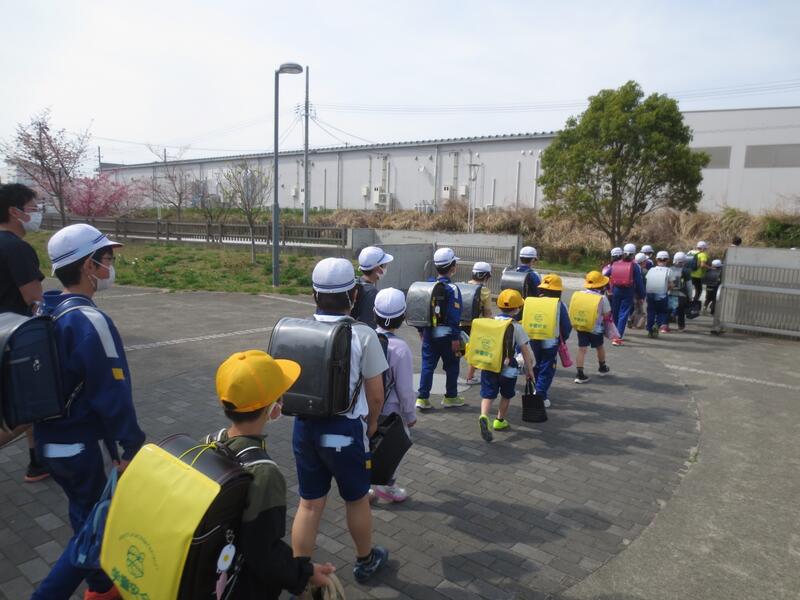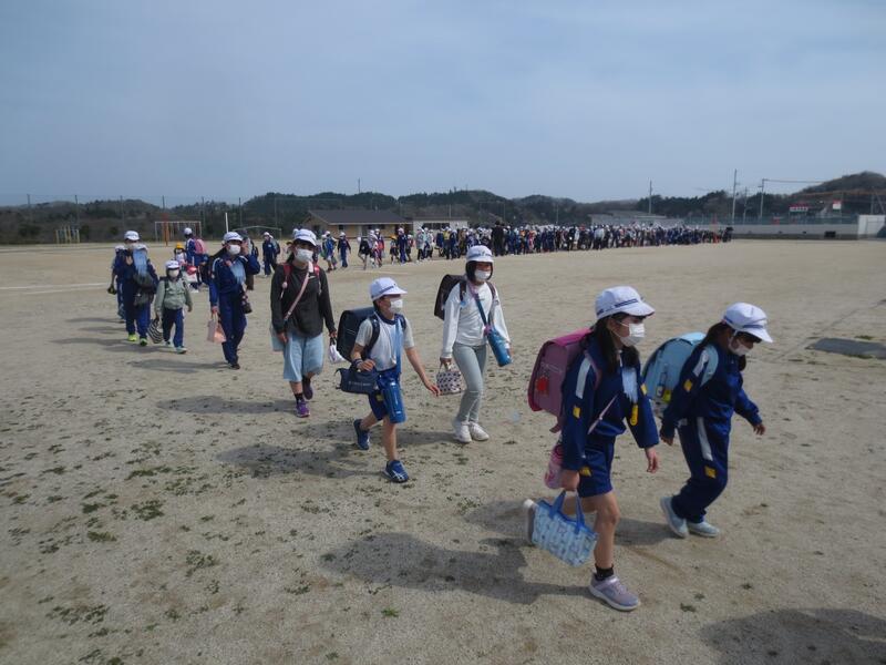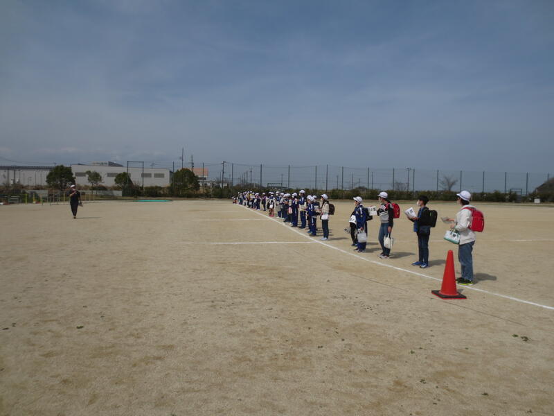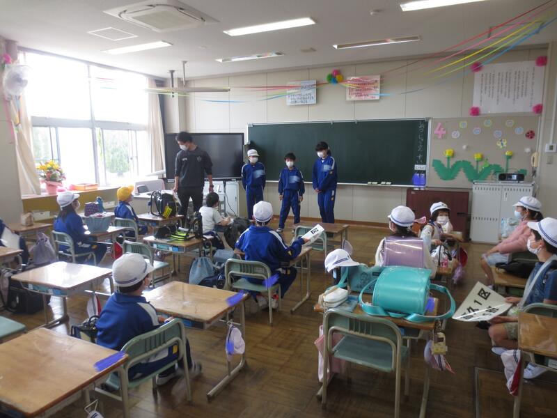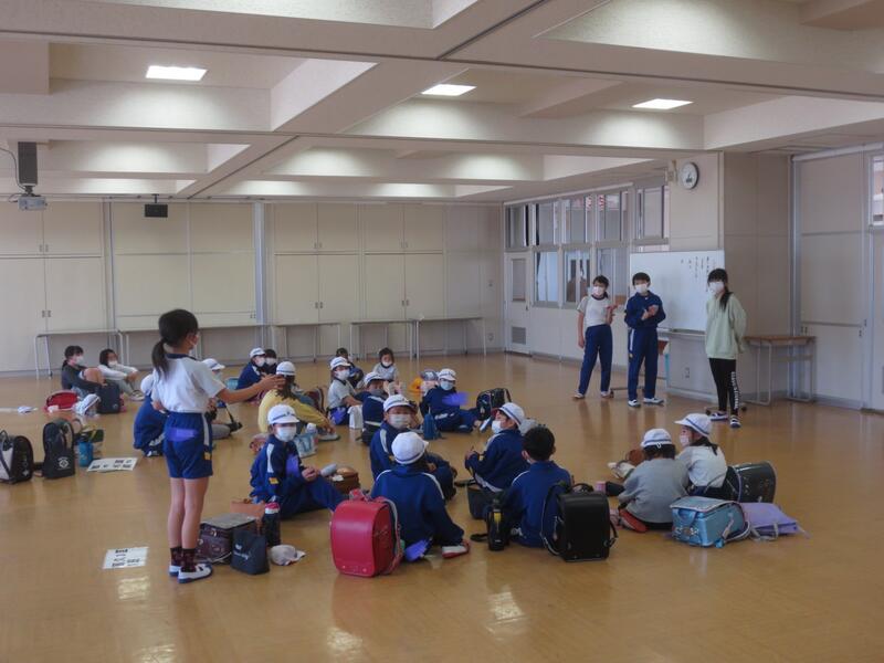 まずは、登校班ごとに各教室などに集まり、安全な登校ができているかを確かめ、校庭での並び方について確かめました。