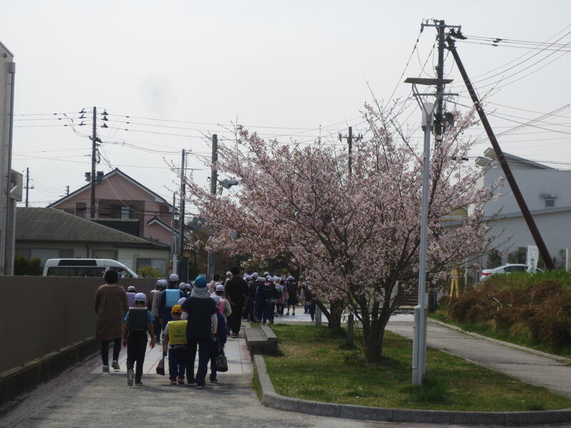 土日からのあたたかい陽気が、本日も続き、学校敷地内の桜の木々や草花も満開で、淡く美しい色合いとともに、はなやいだ雰囲気を醸し出しています。笑顔であたたかく子どもたちを見守っているかのようです。