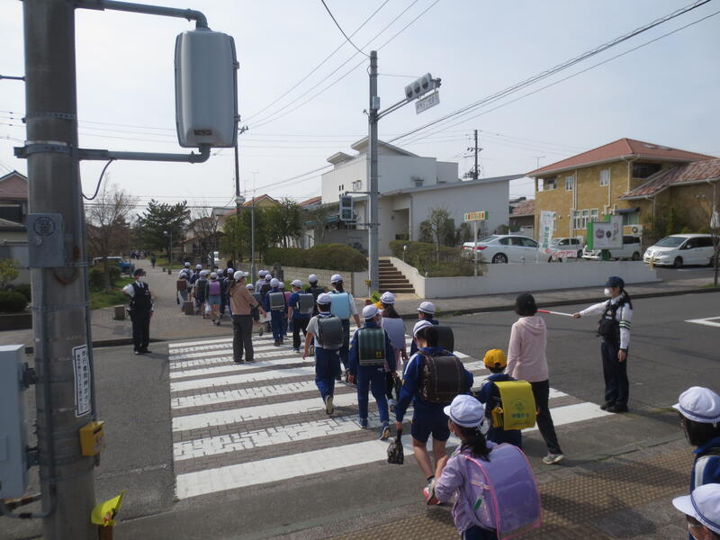 おまわりさんが横断歩道を安全に渡れるようにと、誘導をしてくださいました。