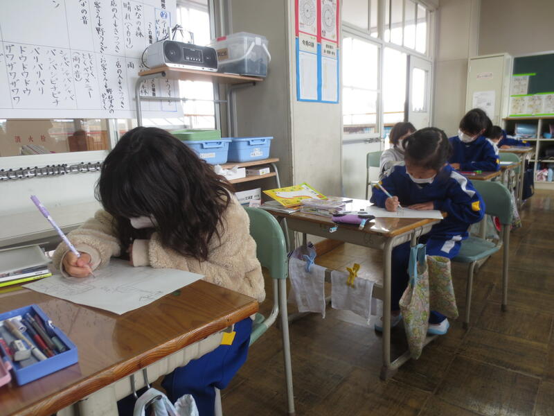 社会科の学習で、自分の家から学校までの地図をつくろうとしていました。