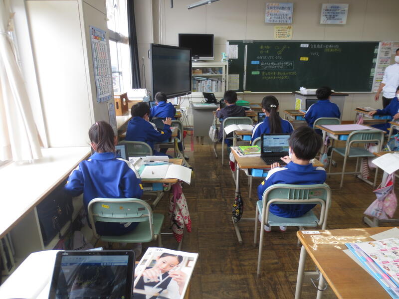 全員が電子黒板を向いて集中しているのが良く分かりますね。