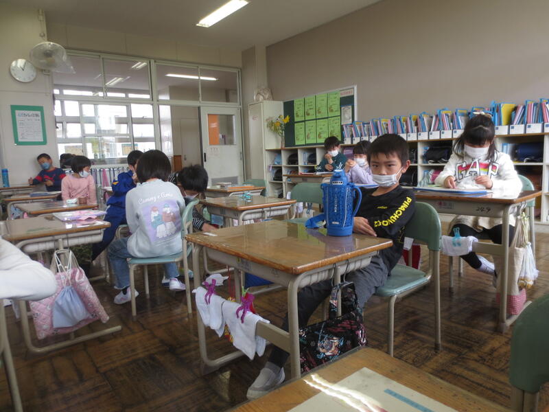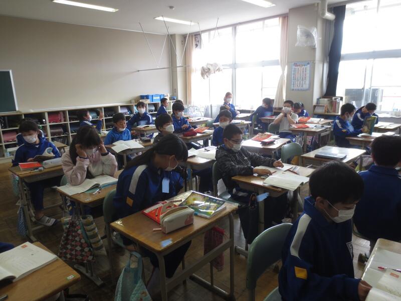 校内放送で指示したところ、職員室から見える1年生の教室では、児童が机の下にもぐるなど適切な行動をしていて、すばらしかったです。