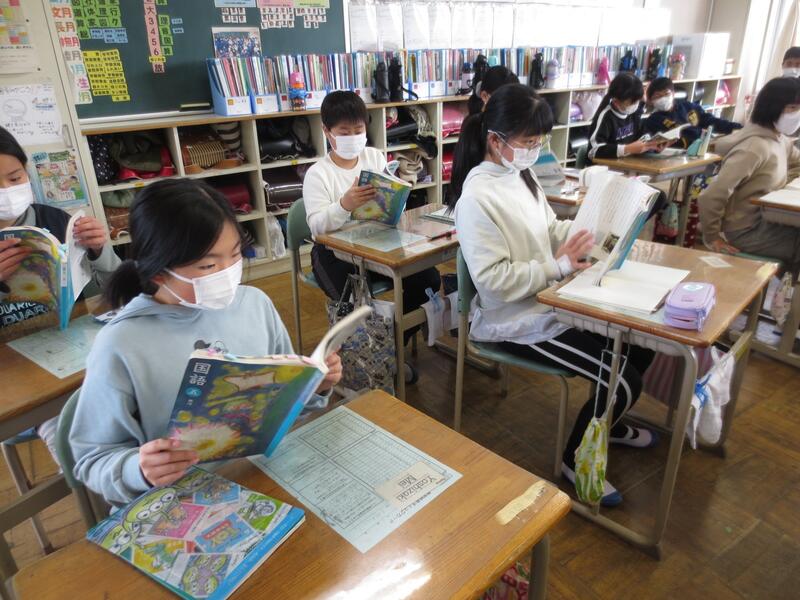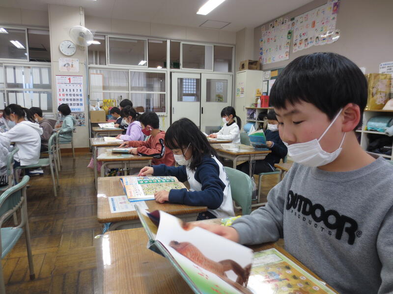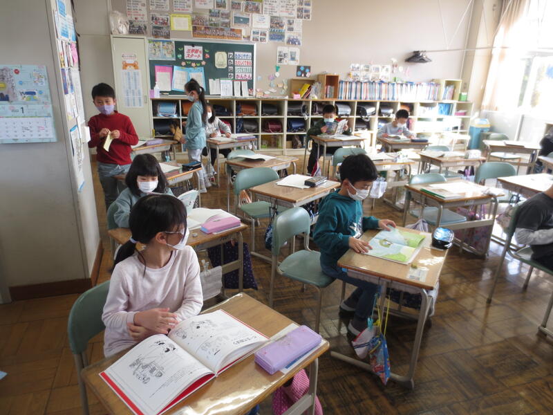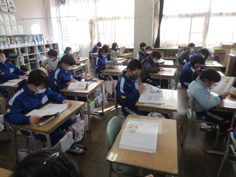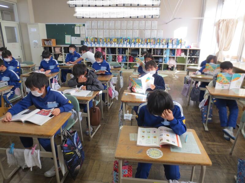 道徳の学習が始まる前、先生が準備をしているときに、静かに読んで待っていました。