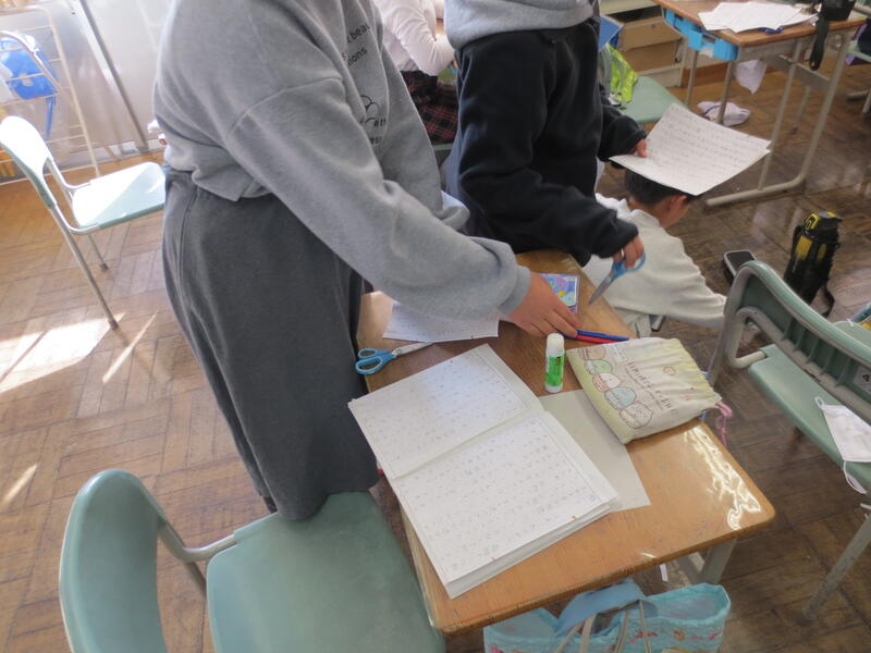 これまでに国語の時間に取り組んだ作文を、きれいに切り取ってノートに貼り、整理し保存していました。