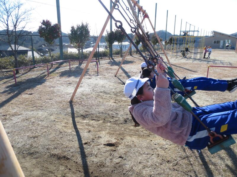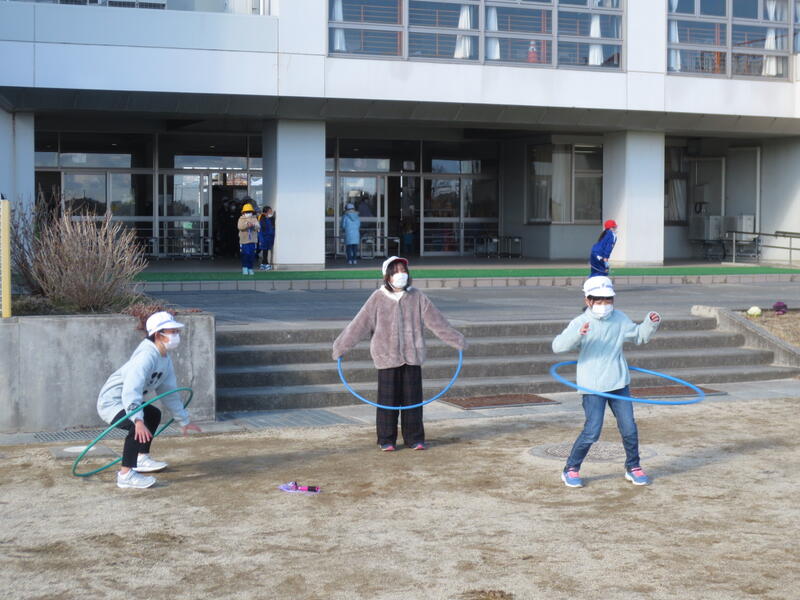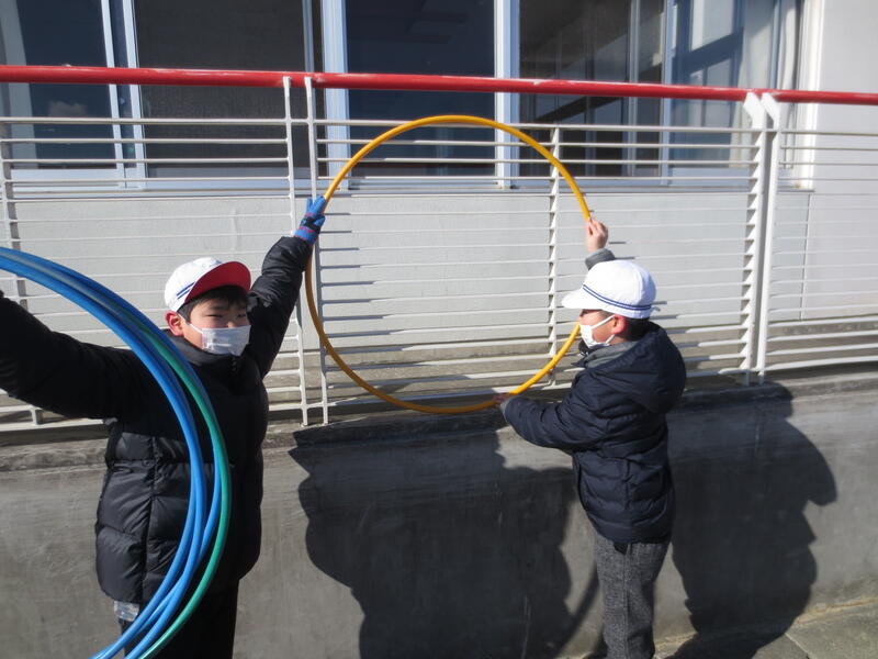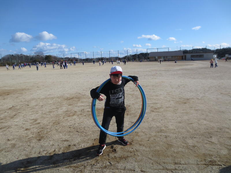 大休憩時、フラフープで遊んでいた3年生が話しかけてきました。