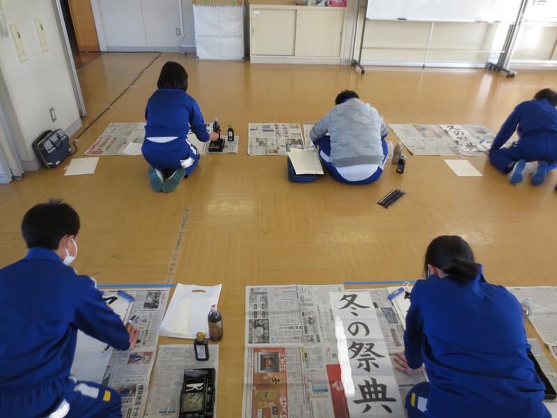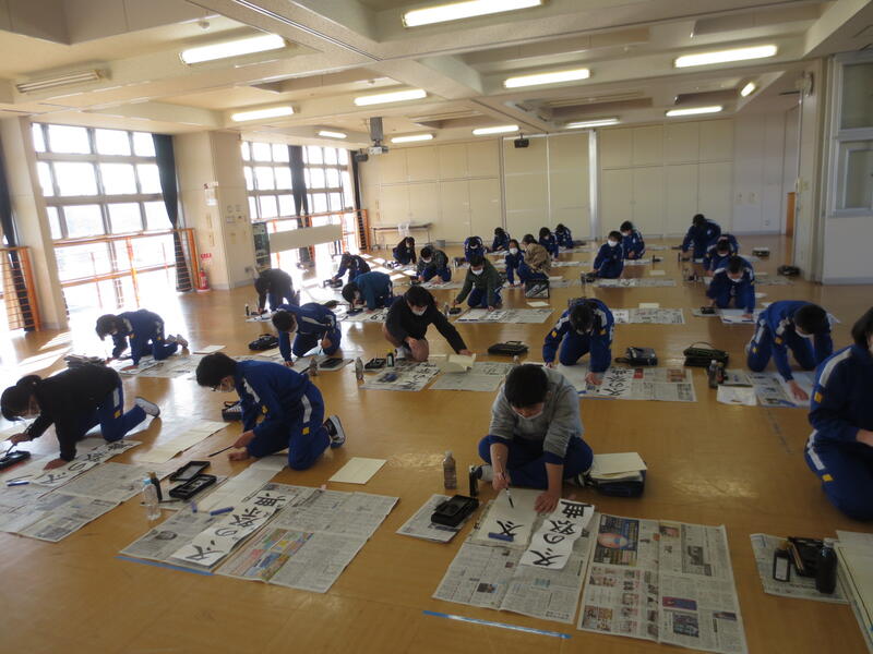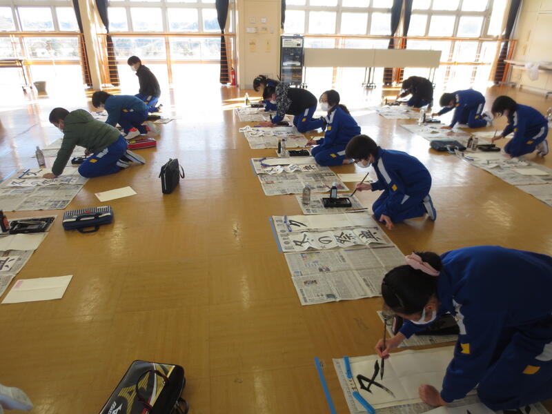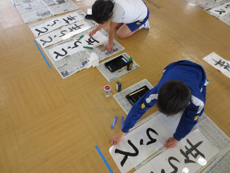 書きぞめ展に出品したり、校舎内に展示したりします。