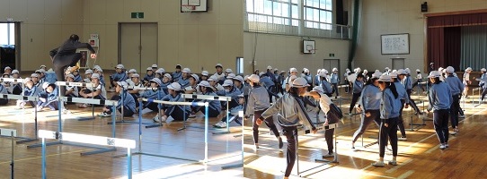 2017年12月5日 08時54分 次年度の陸上競技大会に向けて、朝のランニングで体力作りに励んでいる5年生ですが、授業でも校長先生にアドバイスをいただきながら、ハードル走の練習を頑張っています。