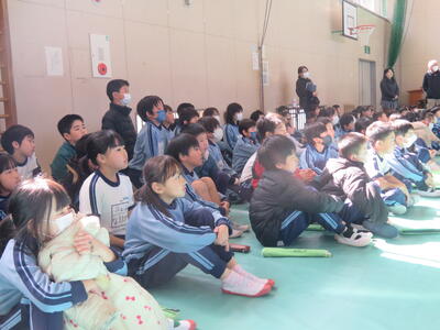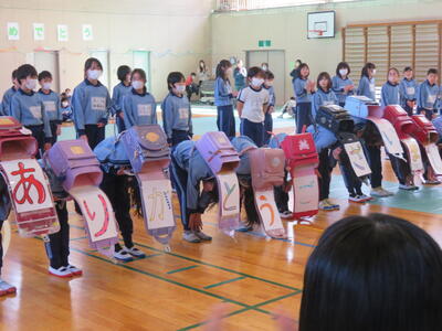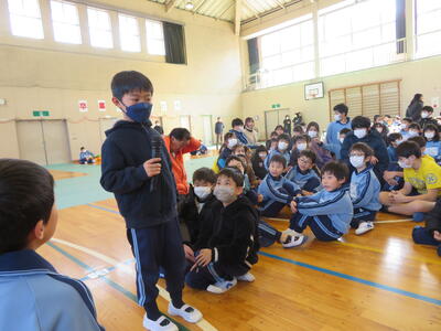 優勝したのは1年生。自己紹介と感想を言いました。中学年と6年生の「猛獣狩り」へと続きます。