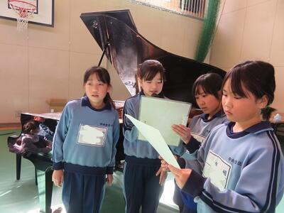 直前までも練習を行って、6年生に伝わるようなはっきりとした言葉で心を一つにして感謝を伝えました。