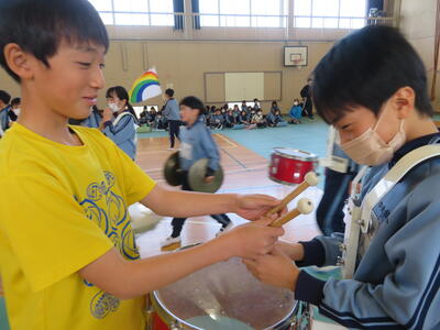 続いて2年生。「6年生も一緒にどうですか?」の呼びかけに応える6年生。