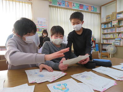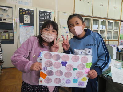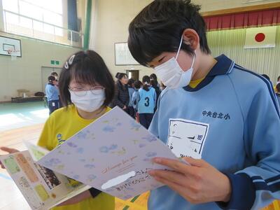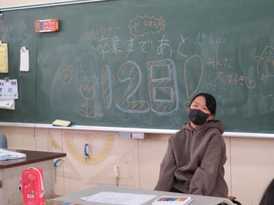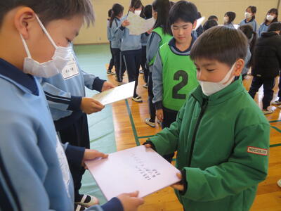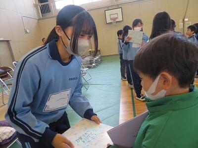 6年生に1年生からのメッセージ。今年度は、1・6年生の子供たち同士の交流が復活してたくさんの思い出ができました。