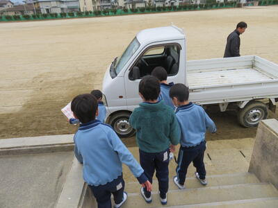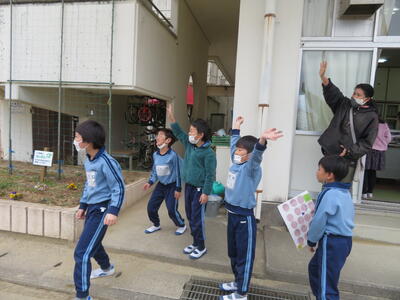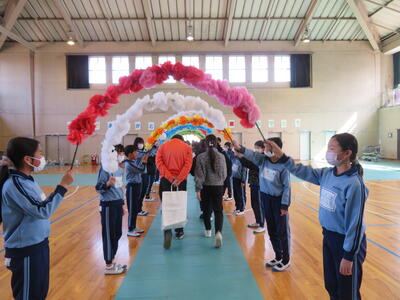 校長先生が喜んでくれて子供たちも弾んで並んで歩きます。