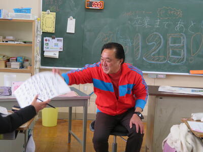 「先生、1年間ありがとうございました。」2年生がお礼のカードを持って職員室にやってきました。