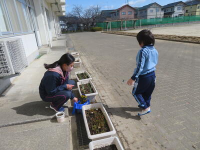 生活科の栽培活動では、身近な植物に愛着をもてるようにしていきます。