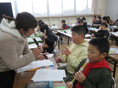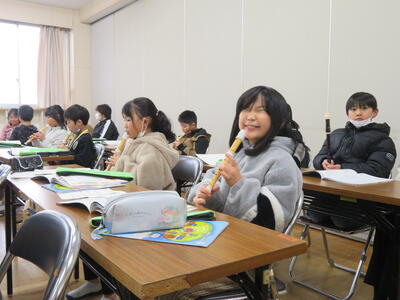 多目的教室で音楽の時間。