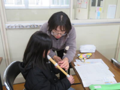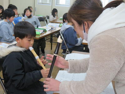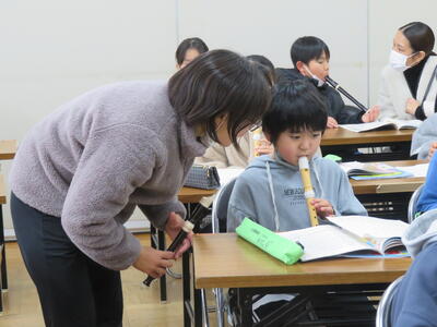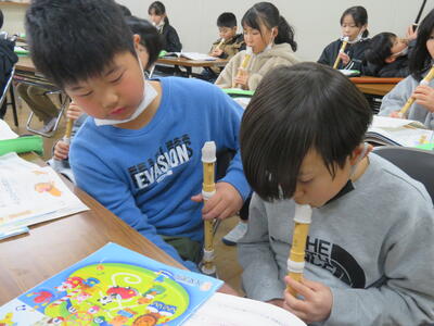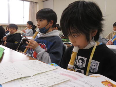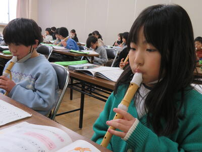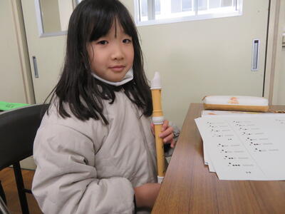 リコーダーの練習中。