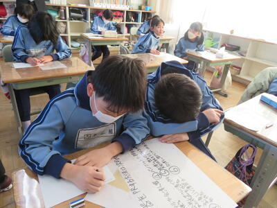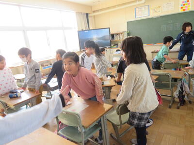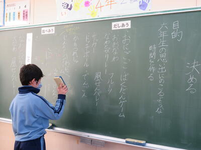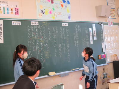 4年生。学級活動。「6年生に感謝の気持ちを伝えるために思い出に残る遊びを考えよう」