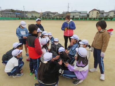 「先生、二重跳び教えてください。」担任の先生にお願いする4年生。