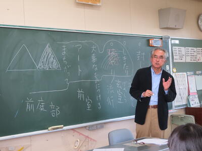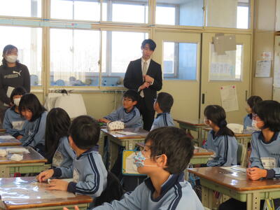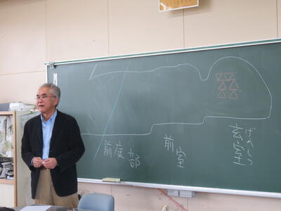 6年生、社会科。伝承郷の館長さんがいらっしゃいました。