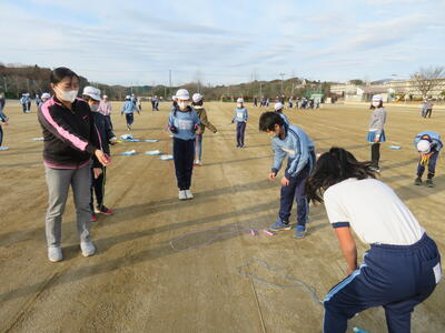 「まずは跳び縄を置いて。ジャンプと手拍子!」