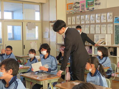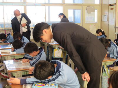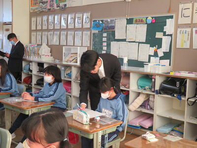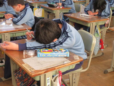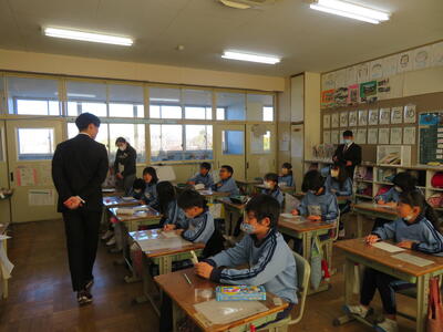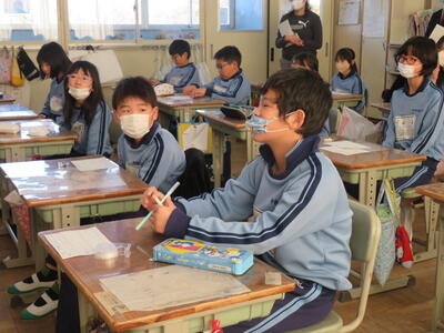 6年生。今日2月13日(月)は中学校の説明会へ。卒業に向けて一日一日と進んでいっています。