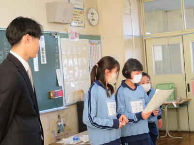 発表前、先生と確認。決まったことの発表は重大。緊張感を伴うもの。先生がすかさずサポートします。